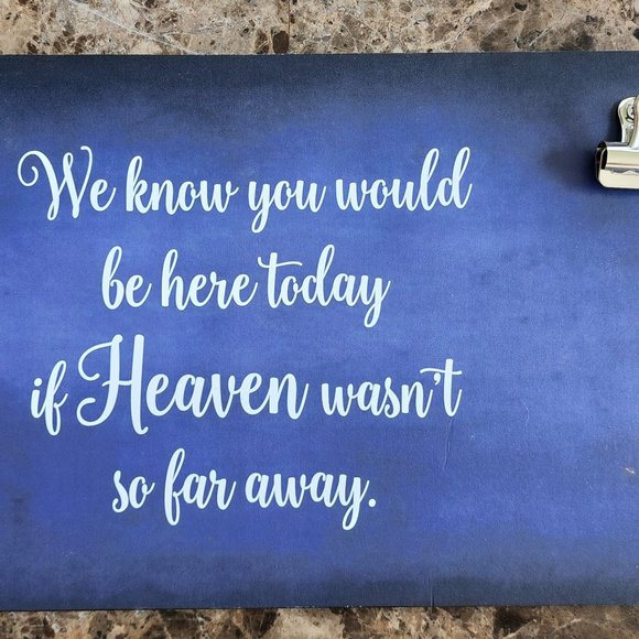 "we know you'd be here today if Heaven wasn't so far away" sign with two clips to hold pictures. Sturdy wood