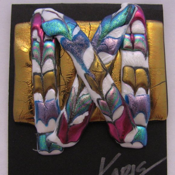 Handmade pin, with X design, which stands for HUG in sign language - on copper tone background. Southwest style.