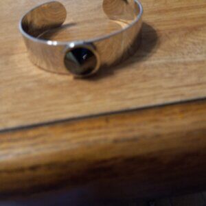 Sign " SARAH COV " SARAH COVENTRY SILVER PLATED CUFF BRACELET w FACETED STONE