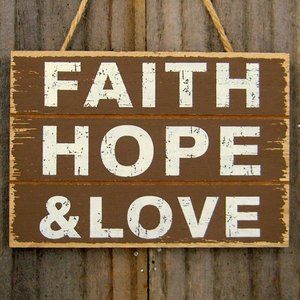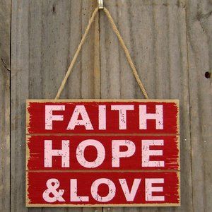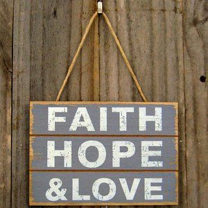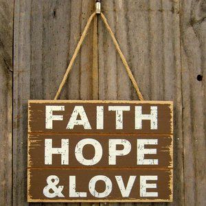 Sign Small Rustic Spiritual 'Faith Hope & Love' Choice of four colors