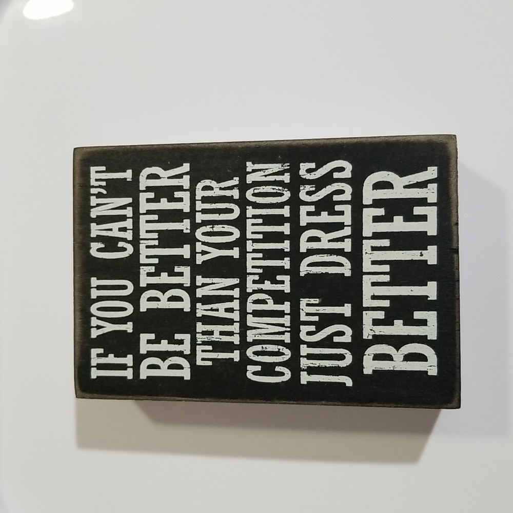 small sign decor for desk or around the house. great to spruce up your closet. sharpie for detail. has a worn in look and a Chevron side. gently used.