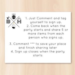 Have at least 5 men's items? Join the Men's Style Party (MSP) Share Group If you can't share during the party, no worries, YES you can still sign up. Like now to get notified on next party! JUST share before noon the next day. Parties in general are dynamic. Which means that when they end, recently shared listings go to the top. WANT TO GET NOTIFIED? Just like the listing to be notified for future MSP Share Group Events! Optional Sign Up Days: Tag yourself, sharing optional
