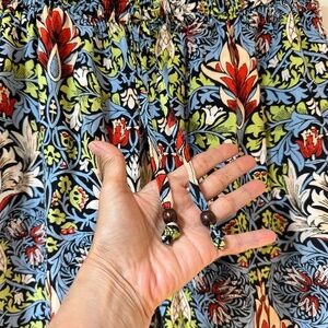 Gorgeous boho print. Soft flowy quality rayon fabric. Cool crochet trim on the hems. Excellent unworn condition. Please see photo for flat measurements.