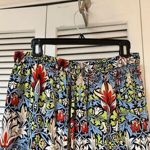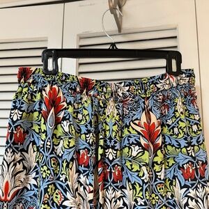 Signals Art Nouveau Print Rayon Wide Leg Elastic Waist Pants Crochet Trim Medium