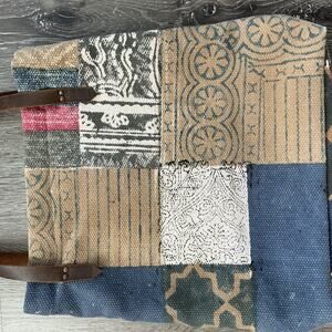 Signals Brand Unique Burlap Stamped Design Tote Bag Leather Handles Art