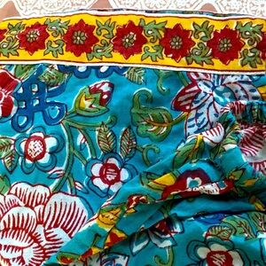 Indian Block Print Floral Cotton Pajama Bottoms - Blue Multi-Color, Size S like new