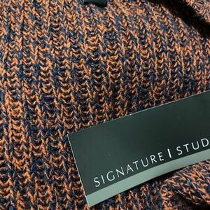 Signature 1 Studio Rust/Navy open cardigan with fringe bottom, size L (100% Acrylic)