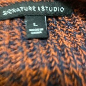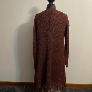 Signature 1 Studio Rust/Navy open cardigan with fringe bottom, size L