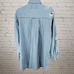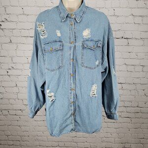 Signature 8 Blue Chambray Distressed Urban Streetwear Denim Button Shirt Small S