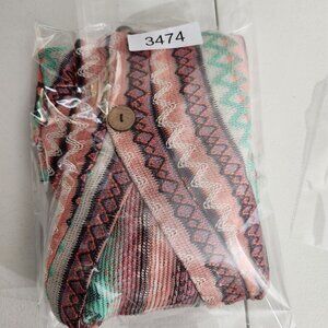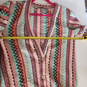 Signature 8 Colorful Knit Cardigan Sweater Zigzag Medium Boho Festival