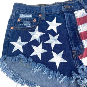 Signature 8 Denim Shorts Cut Off Distressed USA FLAG High Waist Button Fly