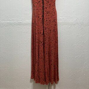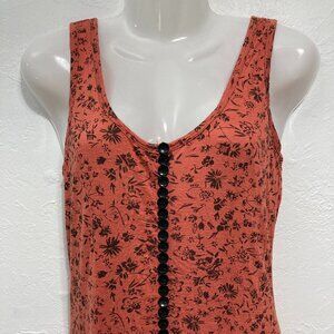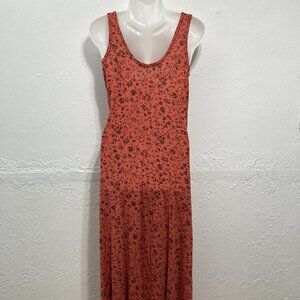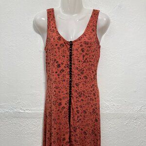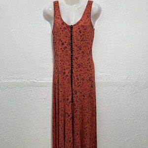 Signature 8 Floral Maxi Dress Sleeveless Tank Button Front Slit Fall Orange L