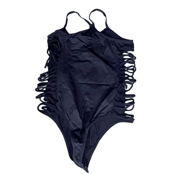 • Style: One-piece bodysuit with looped cutout sides and thin straps