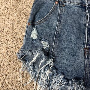 Signature 8 Women’s High Rise Distressed Raw Hem Denim Jean Shorts. Size Small. Style S8900. Excellent used condition.
