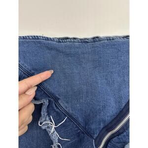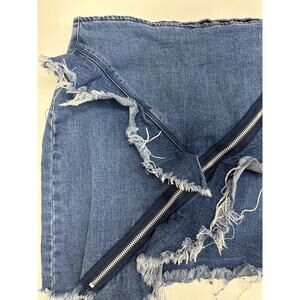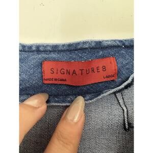 Signature 8 Womens Mini Skirt Size Large Blue Denim Zipper Ruffle Details