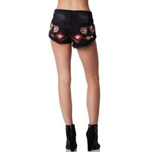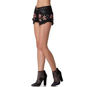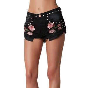 Signature 8 Womens Shorts Black Jeans Mid Rise Flower Embroider Studs Size L (8)