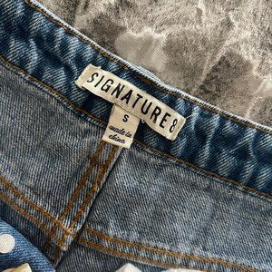 Signature 8 high waist distressed denim shorts in light wash blue S