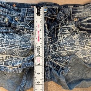 MISS ME Signature Aztec Print Blue Denim Jean 5 Pockets Flap Shorts