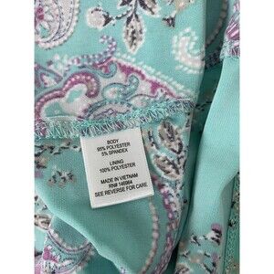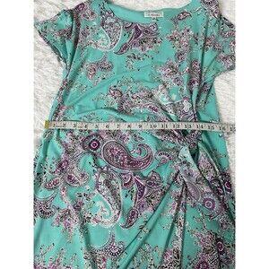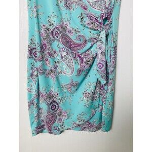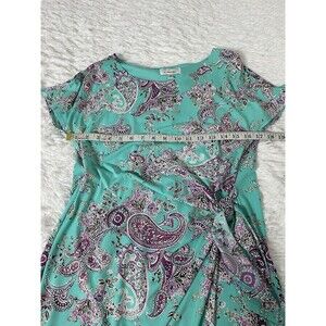 Signature by Bobbie Bee Dress Women's Size PM Teal Green pink Faux Wrap Paisley Bow Tie waist stretch new with out tag in excellent condition see pictures for more details and accurate measurements