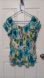 This blouse with tie in the front showcases a beautiful blend of blue and green hues with ruffled details on shoulder, offering a relaxed and airy fit. The ribbed silhouette on the waist and artistic pattern make it a standout piece.
