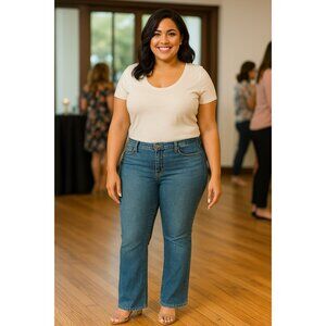bootcut jeans, plus size denim, low rise jeans, casual wear pants, Levi Strauss bootcut, medium blue wash, stretch denim jeans, women’s jeans, flattering fit, versatile style, everyday denim, plus size bootcut, comfortable jeans, fashion casual jeans