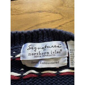 Signature By Northern Isles Cardigan Sweater Size XL Hand Embroidered USA VTG