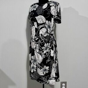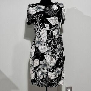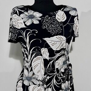 Signature By Robbie Bee Black Floral Short Sleeve Knee Length Dress Size Small