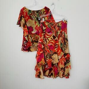 Signature By Robbie Bee Orange Floral Blouse And Skirt Bundle Women’s Size 16