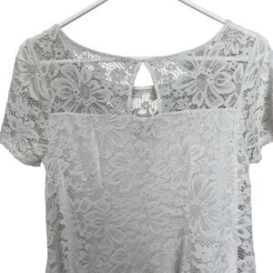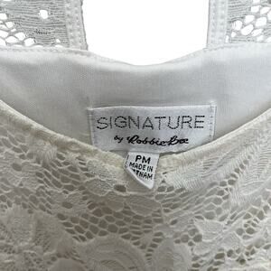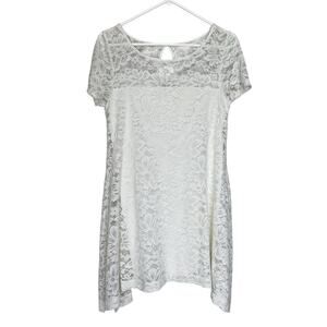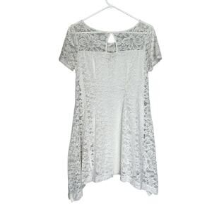 Signature By Robbie Bee | Short Sleeve Lace Assymetrical Trapeze Dress Petite M