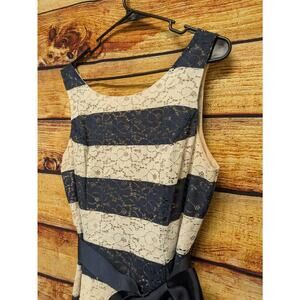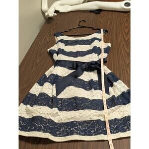 Signature By Robbie Bee Womens 14 Navy/White Belted Lace Dress EUC