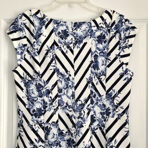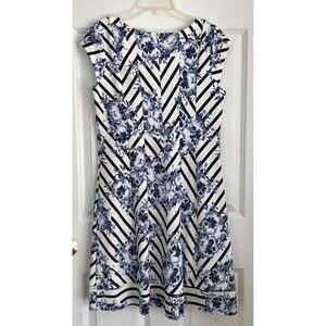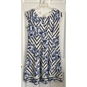 Signature By Robbie Bee Womens Mini Fit & Flare Dress Petites Medium Floral Blue