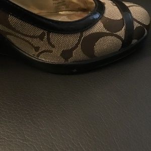 Dark Brown Linning and Wedge, Classic Coach Logo In Lighter brown. Golden insoles