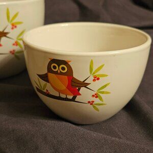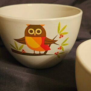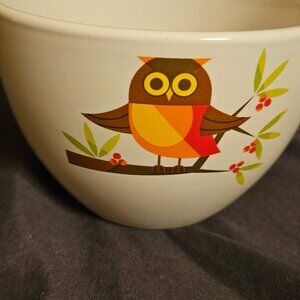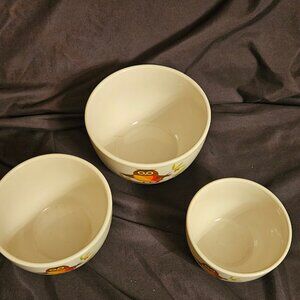 This super fun fall vibes set of nesting bowls caught my eye quick with the bright fall colors and the cutest little owls. The three piece set is made by signature collection from 2013. The set includes a 6 inch 5 inches and 4.25 inch diameter bowl. They are in excellent condition.