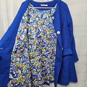 Signature Collection Coat Blue Tweed Minimalist Lagenlook Butterfly Lining 1X