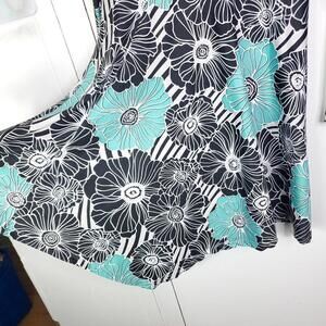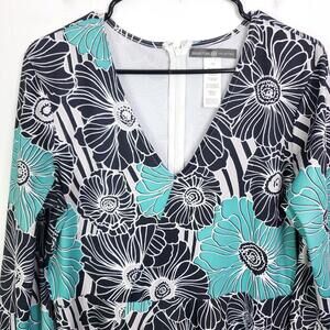 Signature Collection Dress Womens L V Neck Mini Stretchy Floral Resort Vacation