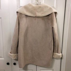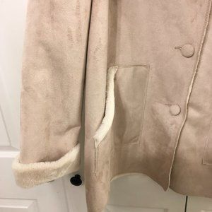 NWOT Stylish super soft & warm button down faux fur and suede coat (Tan/White). Pockets are fully fur lined, inside and collar are fur lined. Fold down collar. This coat does not have tags but has never been worn.