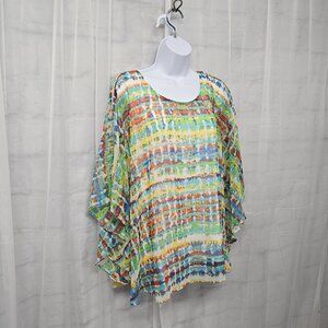 Signature Collection Green Blue Tie Dye Cape Blouse Boho Colorful Festival L