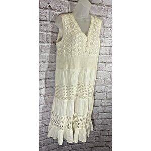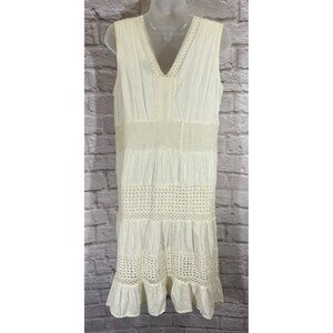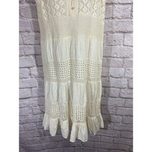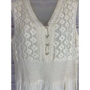 Signature Crinkle Tiered Dress XL Ivory Crochet Boho Mini Fairy Cottage Romantic Southwestern