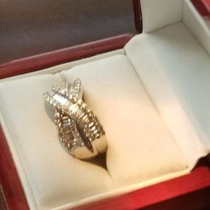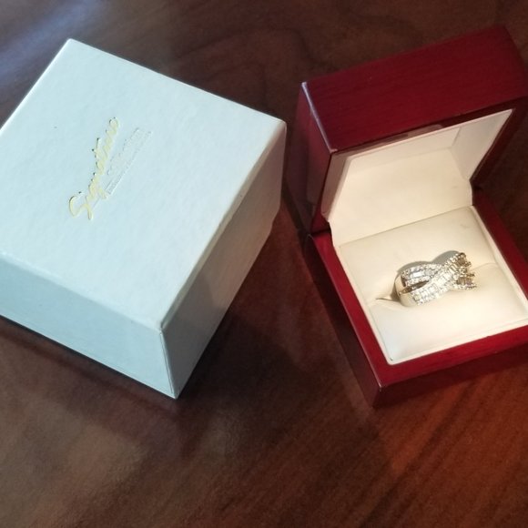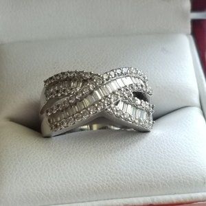 2k Signature Diamond. Gorgeous Criss-Cross Design in Silver, in original packaging. Size 8.