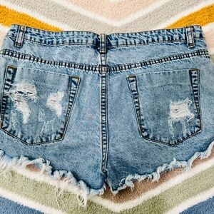 Signature Eight Button Fly Distressed Jean Shorts - Size Large