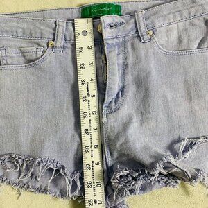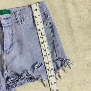 Signature Eight Raw Hem Purple Lilac Shorts S, 5 pocket design, button zip closure, silver grommets, belt loops, No rips, holes, stains (one small stain inside waist band next to tag, no other noticeable flaws.
