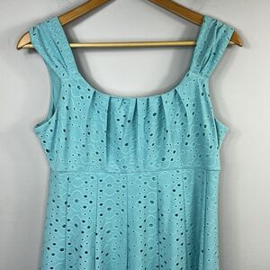Signature Ella Aqua Sleeveless Fit and Flare Empire Waist Eyelet Dress 12P