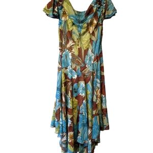 Signature by Robbie Bee Floral Maxi/Midi Dress Flowy, Cowled Neckline, Handkerchief Skirt, Ruffled Flutter Sleeves Sz.6
