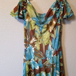 Beautiful light flowy dress with slightly cowl neck and V neck back.