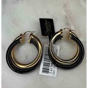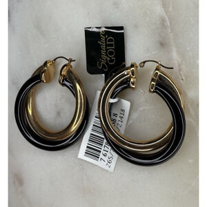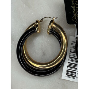 Signature Gold 25 Carat Onyx Earrings 14K Gold Over Resin Core Stunning Elegant