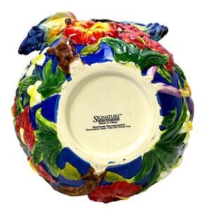 Signature Home Collection 'Bird' Parrots Vibrant Majolica 14.5" Ceramic Art Vase