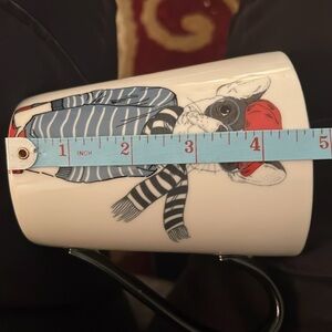 The y are 17.5 oz stoneware mugs featuring a cartoon animal design. Collect all 6!! A bear, a cat, a pig, and a rabbit, each dressed in hipster clothing. Mugs are dishwasher and microwave safe.