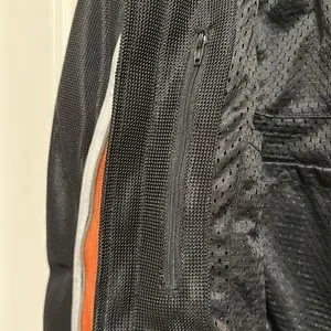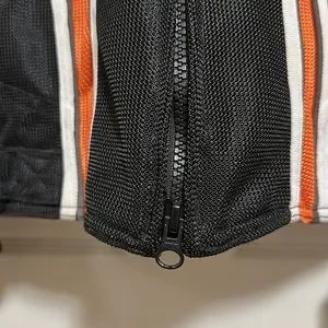 Spring is in the air! Perfect warm weather jacket! Excellent condition! Non smoking household. 100% polyester knit mesh. Body armor pockets at elbows and shoulders fit lightweight body armor. Mandarin collar. Zipper front. Hook-and-loop cuffs. Adjustable waist tabs. Hydration pockets fit Hydration Packs. Two zipper hand-warmer pockets and two inside pockets. 3M Scotchlite Reflective Material piping on front and back. Embroidered graphics on left chest. 3M Scotchlite Reflective Material applique and embroidered graphics on back.