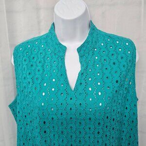 Signature JMB Teal Turquoise Embroidered Eyelet Tunic Tank Boho L
