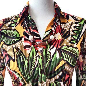 Signature Larry Levine Womens Size S Botanical Accordion Pleated Necklace Top